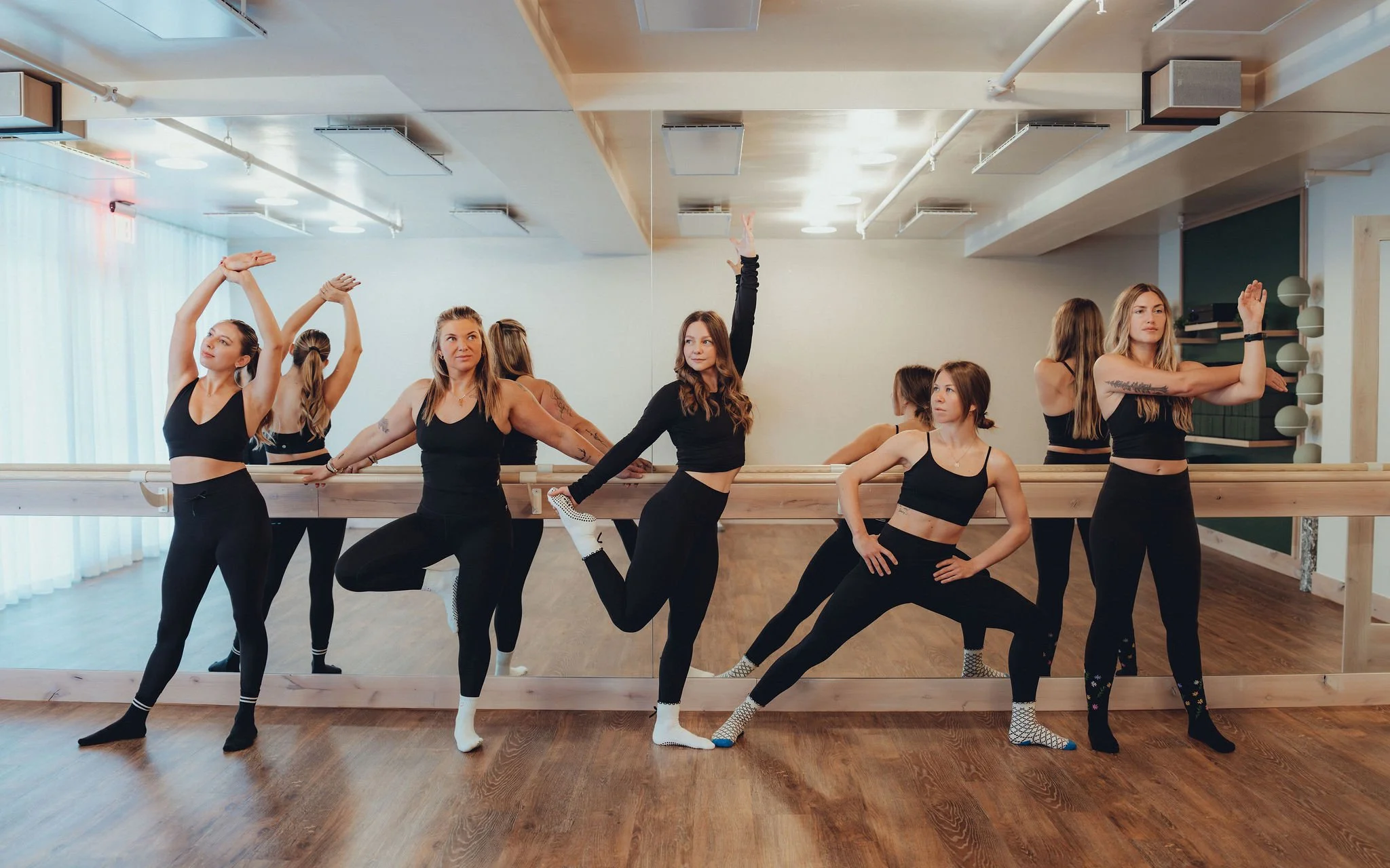 Barre and ReBarre classes use the ballet barre to combine small, controlled movements with high repetitions and light resistance. Rooted in dance, each session blends strength, balance, and endurance for a full-body, low-impact workout that sculpts and tones. Classes are heated to ~80 degrees.